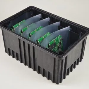 Kleanstat™ can be formed into trays or made into hanging folders for tote systems. Our Kleanstat Flex™ Tote systems allow for many PCB sizes to be stored in one tote system, low FOD, no static and great physical protection.